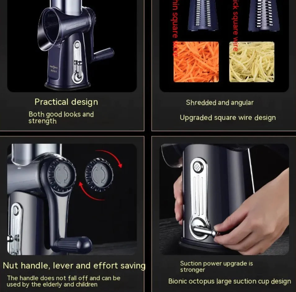 Simplify meal prep with the EasyChop 5-in-1 Vegetable Cutter—your all-in-one solution for slicing, grating, and shredding. Featuring a convenient hand roller design, this multi-function chopper effortlessly cuts, grates, and shreds vegetables like potatoes, carrots, cucumbers, and more. The innovative roller mechanism requires minimal effort while delivering uniform cuts for perfect cooking results every time.